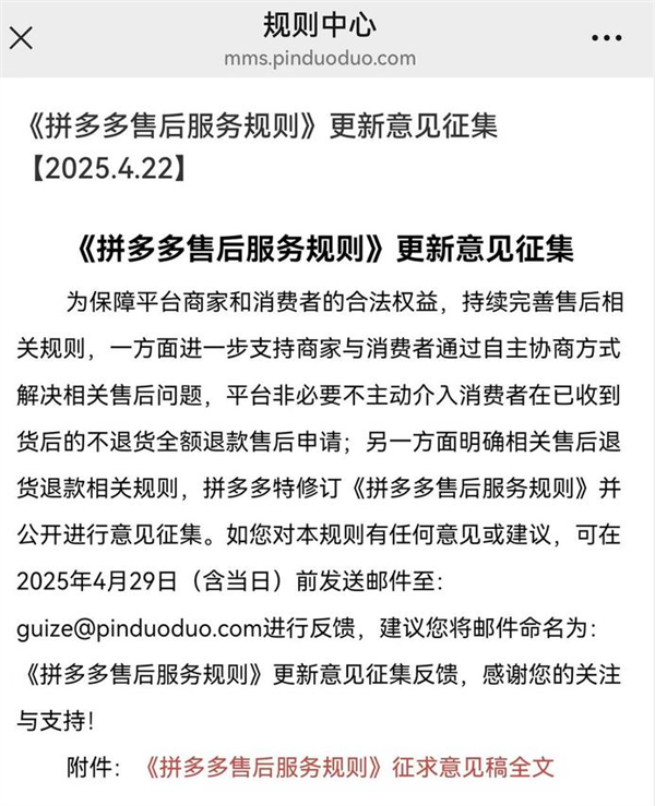 差评君去查了下,发现原来是淘宝、拼多多、京东、抖音和快手5家电商都发布了公告,开始针对“售后服务规则”征集意见,其中都“不约而同”地提到了“仅退款”的问题。