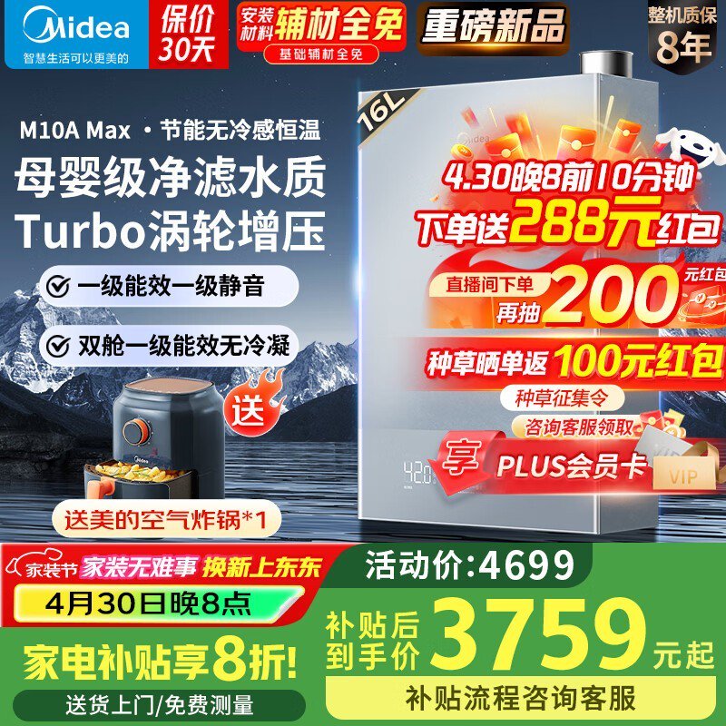 美的零冷感恒温燃气热水器JSLQ27-M10A Max促销