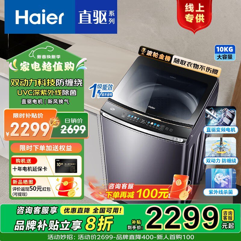 海尔云熙XQS100-BZ358S波轮洗衣机10公斤大容量直驱电机