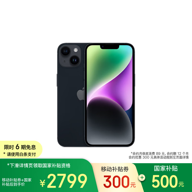 苹果iPhone14享国家补贴15%优惠京东到手价2799元起