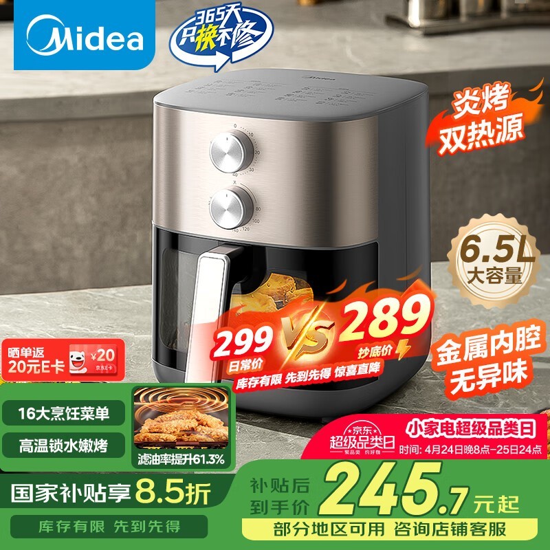 美的空气炸锅KZE6559炎烤免翻面技术6.5L大容量