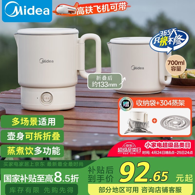 美的K - SH07S104便携式电烧水壶京东优惠价75.26元