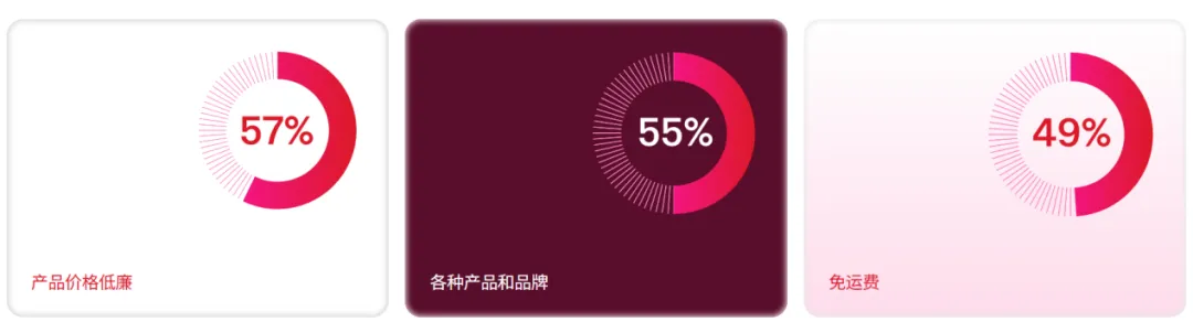 各年龄段的购物者中,有三分之一表示,他们在电商平台上获得了最佳的网购体验。他们 对电商平台最看重的三大方面是: