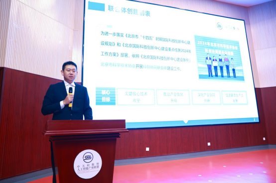 中关村数智人工智能产业联盟副秘书长牟帆汇报联合体成果。牟帆详细汇报了联合体在技术研发和项目合作等方面的突出成绩,为行业发展提供了可借鉴的实践经验。