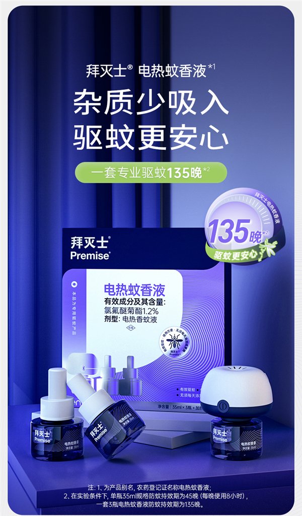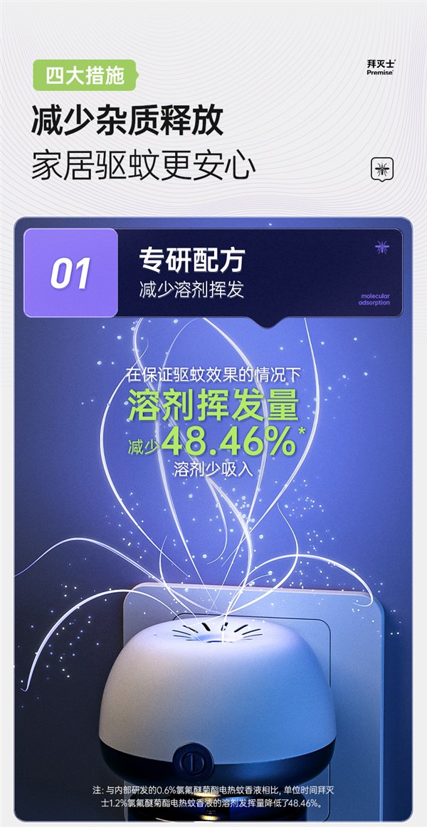 专研配方,在保证驱蚊效果的情况下,溶剂挥发量更少,杂质少吸入。