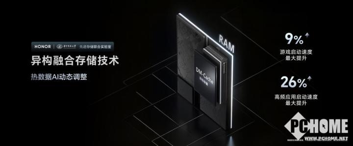 而为了进一步提升性能表现,荣耀联合华中科技大学,在荣耀GT Pro上首发异构融合存储技术。通过在RAM中开辟一块动态存储区域,实现热数据的AI动态调整,大大提升荣耀GT Pro重载游戏及高频应用的启动速度。