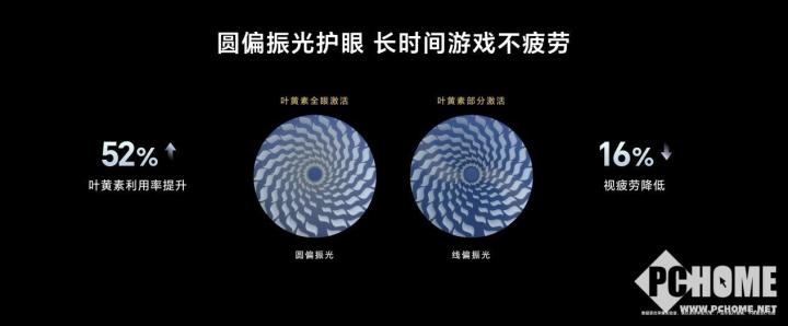 这块屏幕采用了旗舰同款的硬件级圆偏振光护眼,通过模拟自然光在各方向上的均匀分布特性,能够更广泛地激活眼底叶黄素,降低长时间游戏的眼部疲劳。