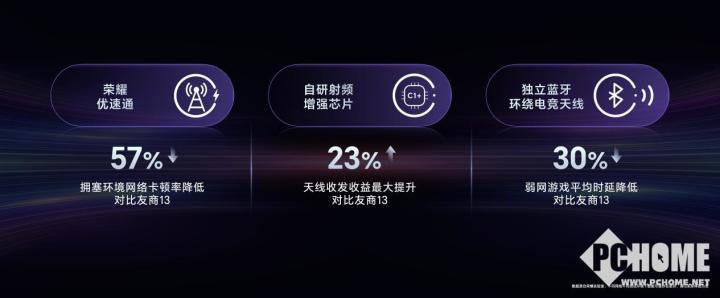 荣耀GT Pro覆盖多个5G频段,内置自研射频增强芯片HONOR C1+,还进行了独立Wi-Fi、蓝牙天线架构,显著提升用户在拥塞场景、弱网场景还有干扰场景下的游戏体验。外放上搭载旗舰同款的荣耀环绕低音炮,采用行业领先的双1216超大立体声扬声器,以及双开放式音腔设计。