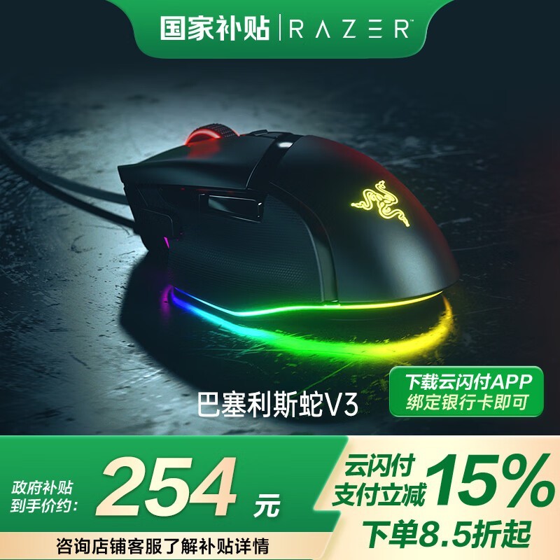 雷蛇巴塞利斯蛇V3有线鼠标黑色款京东促销价279元