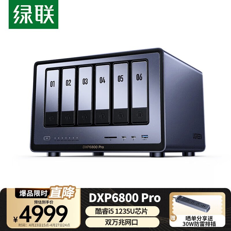 绿联DXP6800 Pro六盘位NAS存储京东特惠4959元到手