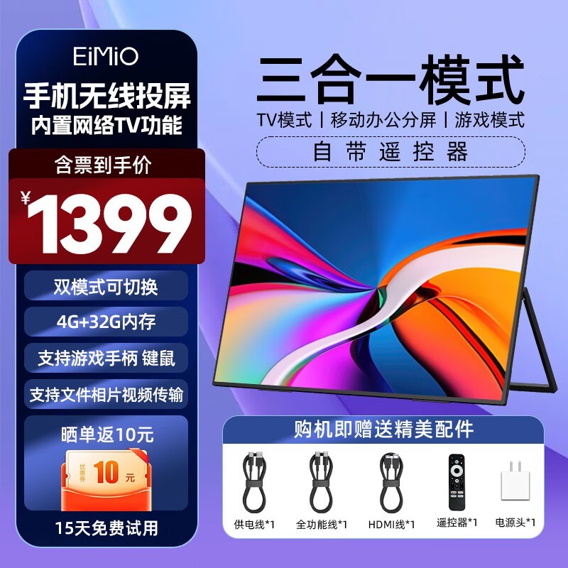 EIMIO 23.8英寸便携显示器京东好价1399元