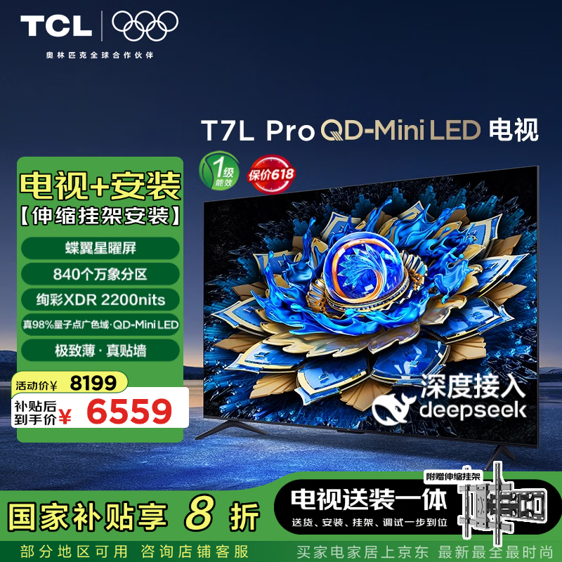 TCL T7L 85英寸Mini LED电视京东特惠6287元
