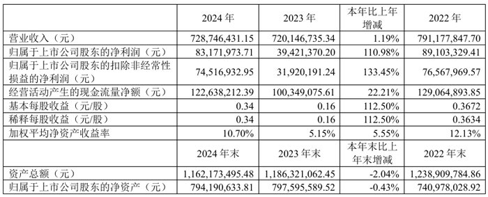 报告期内,深圳市劲拓自动化设备股份有限公司发布2024年年度报告。2024年度,公司实现营业总收入7.29亿元,较上年同期增长1.19%;实现母净利润8,317.20万元,较上年同期增长110.98%。