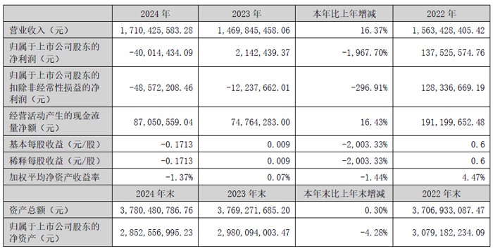 4月23日晚间,奕东电子科技股份有限公司发布2024年年度报告。报告期内,公司实现营业总收入为17.1亿元,比上年同期增加16.37%,归母净利润为亏损4,001.44万元,扣非净利润为亏损4,857.22万元。