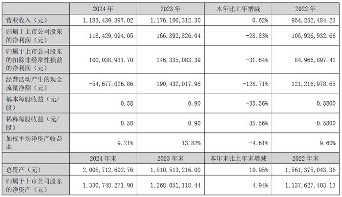 2024年度,安徽芯瑞达科技股份有限公司显示模组类产品出库11,729.99 万件,同比增加5.59%;全部营业收入11.83亿元,同比增加0.62%;归母净利润1.18亿元,同比减少28.83%;扣非净利润1.0亿元,同比减少31.64%。