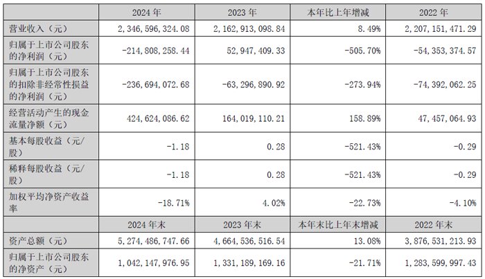2024年度,翰博高新材料(合肥)股份有限公司实现营业收入23.47亿元,同比增长8.49%。归母净利润亏损2.14亿元,同比下降505.70%。扣非净利润亏损2.37亿元,同比下降273.94%。