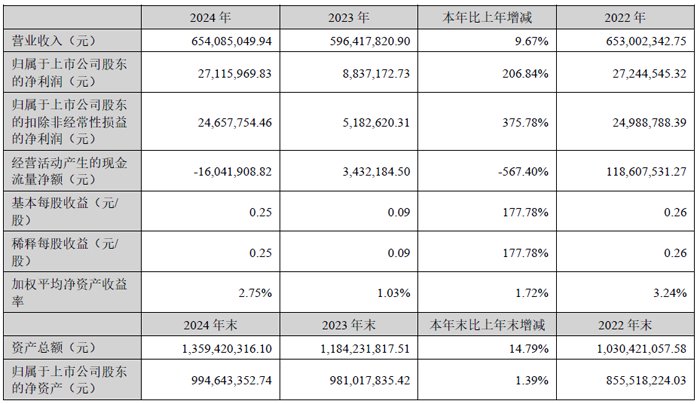 2024年度,隆华科技集团(洛阳)股份有限公司发布2024年年度报告。2024年度,公司实现营业收入27.11亿元,同比上升9.87%;实现归母净利润为1.31亿元,同比增长3.37%;实现扣非净利润为1.16亿元,同比下降11.57%。