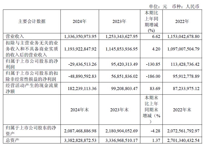报告期内,宁波长阳科技股份有限公司实现营业收入13.36亿元,同比增长6.62%,实现归母净利润亏损2,943.65万元,同比下降130.85%。其中,反射膜销售收入增长,毛利率受产品结构等因素影响同比下滑,但仍维持在较高水平;光学基膜中高端产品占比持续提升,毛利率改善。