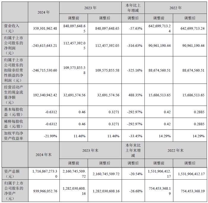 报告期,长沙岱勒新材料科技股份有限公司实现营业收入3.59亿元,较上年同期下降57.63%;实现归母净利润-24,361.56万元,较上年同期下降316.63%;实现扣非净利润-24,671.55 万元,较上年同期下降325.16%。