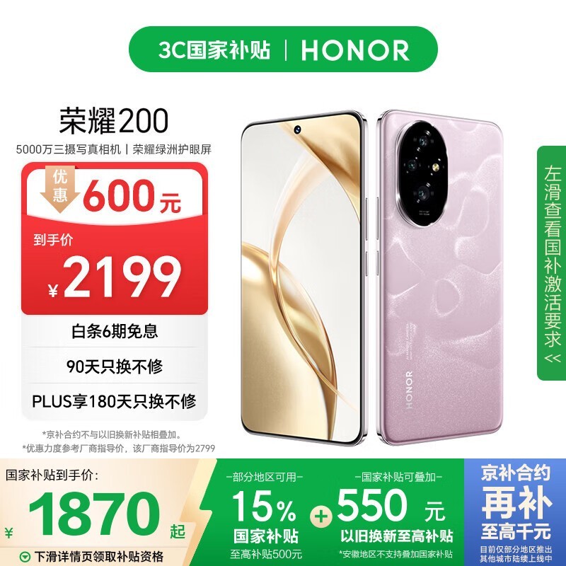 荣耀HONOR 200 5G手机京东特惠仅2159元享轻薄影像全能体验