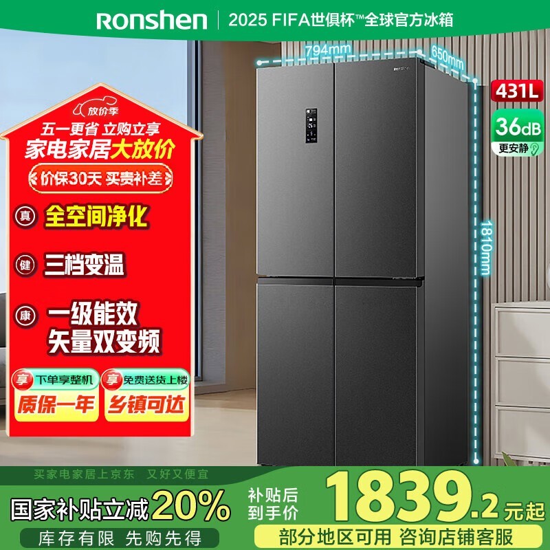 容声十字对开门冰箱BCD-431WD12FP星蕴灰促销