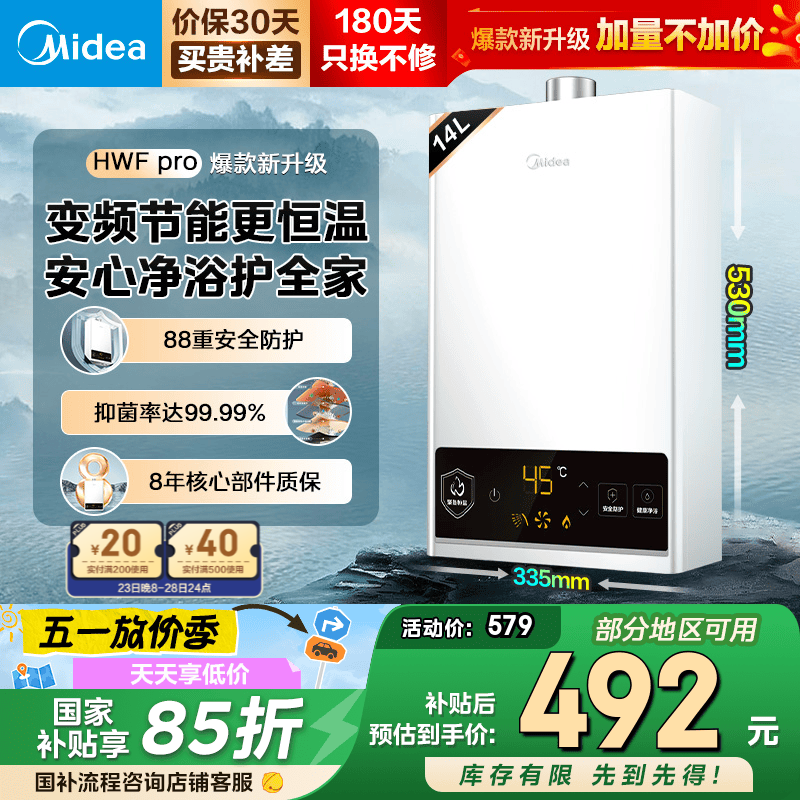 美的HWF Pro系列燃气热水器14L大水量即热设计促销信息