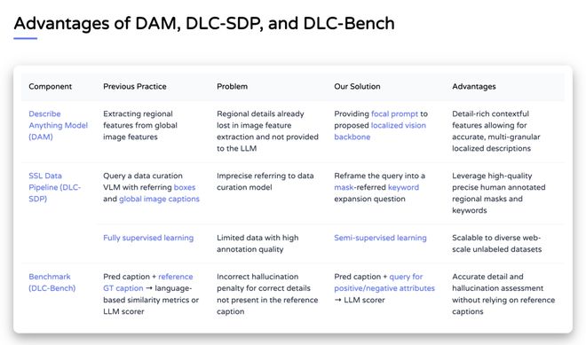 通过自训练方法优化描述质量,确保输出文本的高精准度,团队同时推出 DLC-Bench 评估基准,以属性级正确性而非僵硬的参考文本对比衡量描述质量。