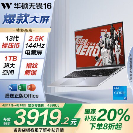 无畏16 酷睿版如同《凸变英雄X》中的英雄般自信可靠,优质大屏+强劲核心等全能配置更是值得信赖,以绝对硬实力助英雄成长。现在下单即可享受20%国家补贴,叠加福利到手仅需3919.2元,选购价值超高,值得入手!