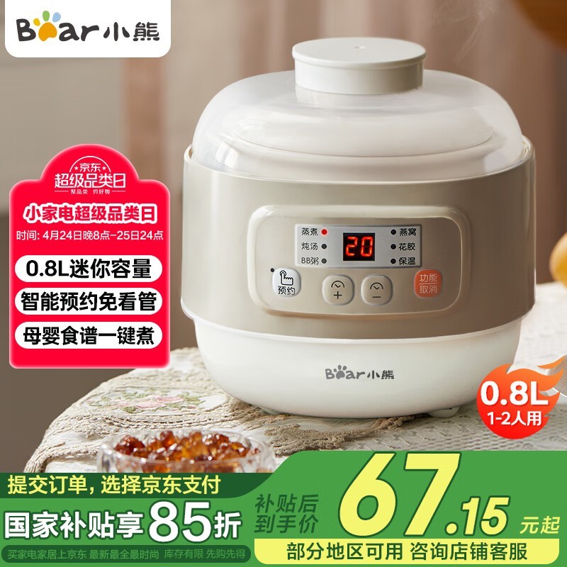 小熊 DDZ-A08D1 电炖锅 | 杏色0.8L | 多功能隔水炖煮