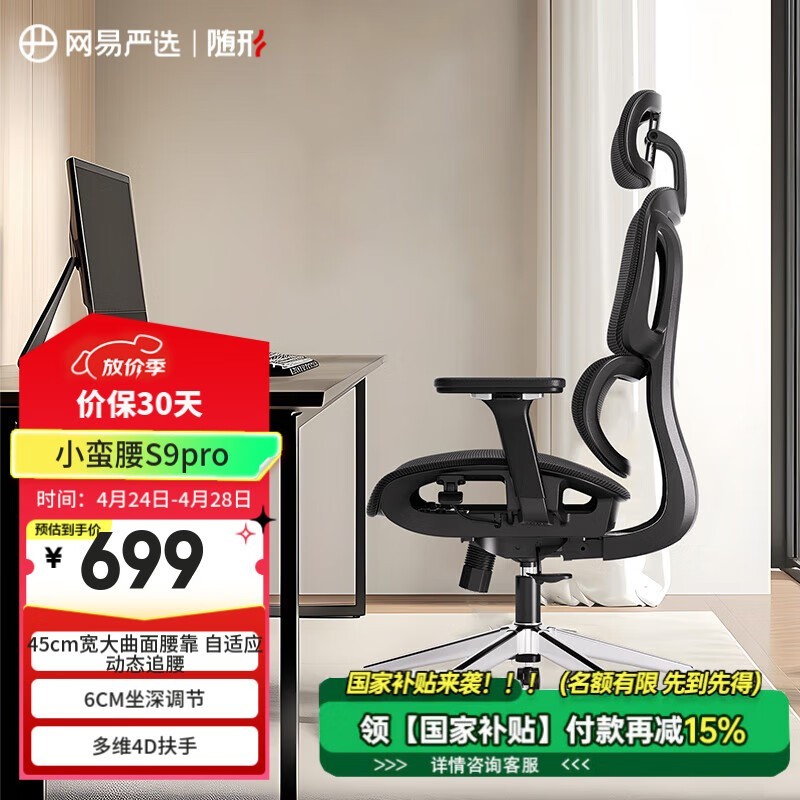 网易严选小蛮腰S9 Pro人体工学椅黑色款551元到手