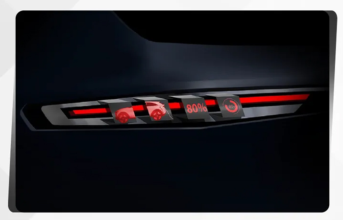 在车展上马瑞利展示其概念产品像素化尾灯,该产品创新性地将 OLED-TFT 高分辨率显示技术整合于尾灯之中,以满足汽车照明领域动态交互和个性化显示的趋势。这项创新技术使尾灯能够以动态图像的形式,向其他道路使用者传递车辆状态、行驶意图等信息,从而显著提升行车安全性。同时,这项技术也让汽车设计师的设计自由度大幅提升,使个性化表达成为可能。