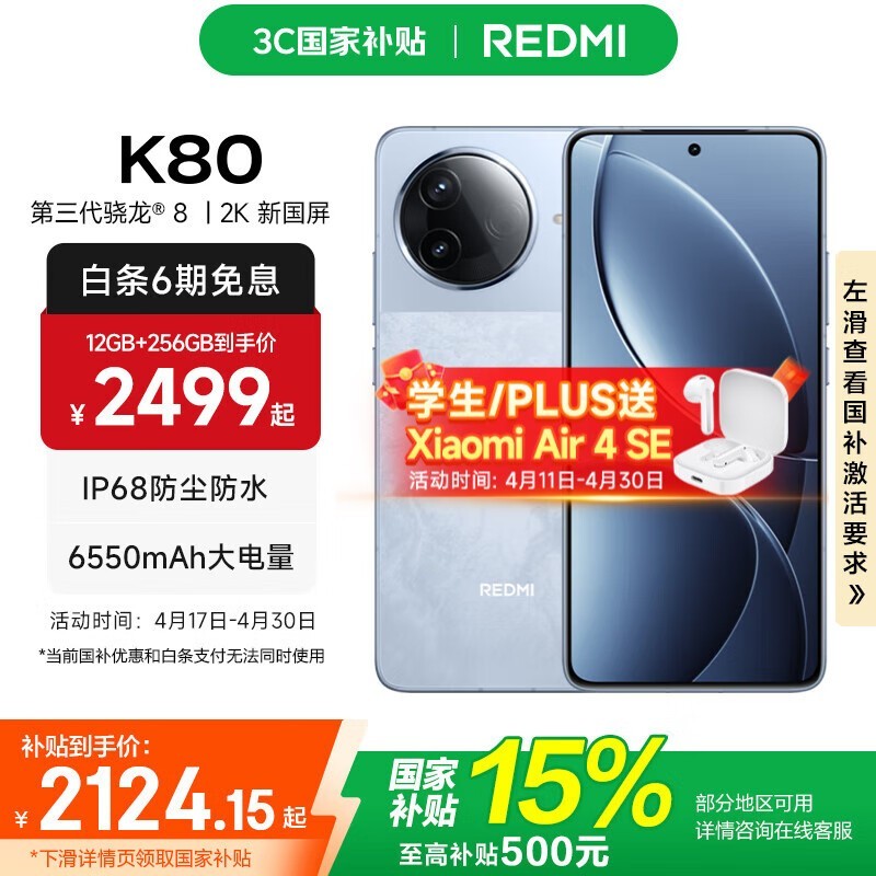 Redmi红米K80 5G手机澎湃性能,限时优惠1869元起!