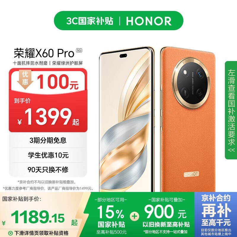 荣耀X60 Pro 5G手机燃橙色版限时促销