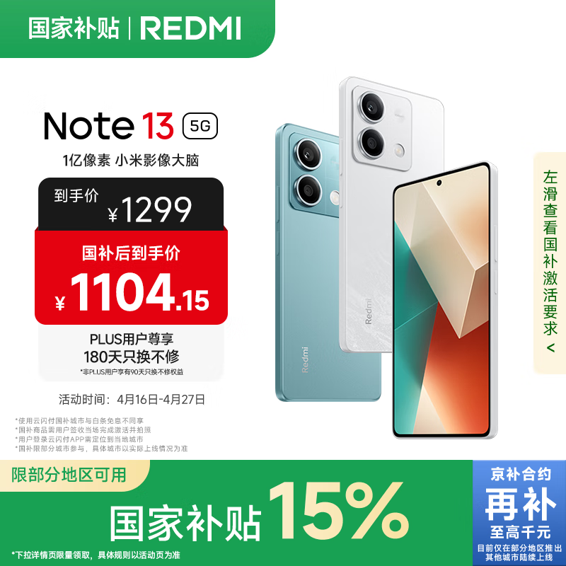 红米Note 13 5G(12GB+256GB)京东促销价980元