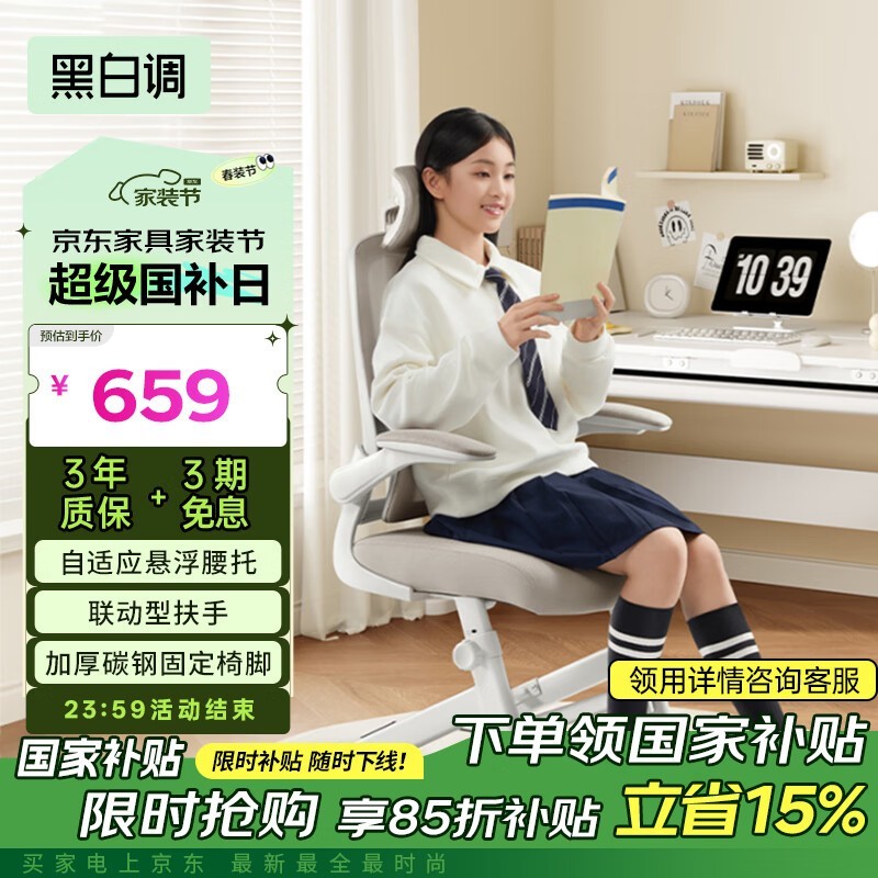 黑白调P1Pro人体工学椅青少年款京东619元到手