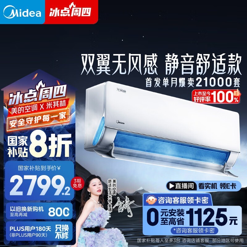 美的无风感空调1.5匹新一级能效壁挂式空调