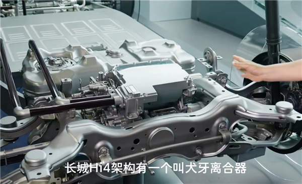 魏建军表示,长城的Hi4架构里有一个“犬牙离合器”,在高速巡航的时候,后轮会脱开机械结构,电机不跟着转动,如此就变成了两驱,非常省油。