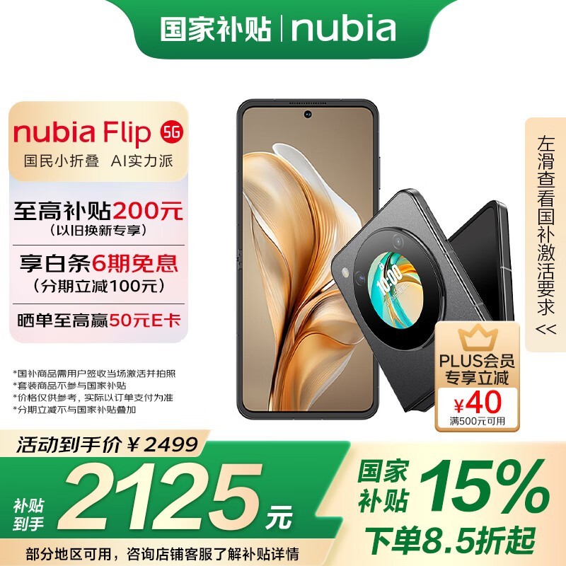 努比亚Flip5G折叠屏手机焦糖色版特惠至1923元