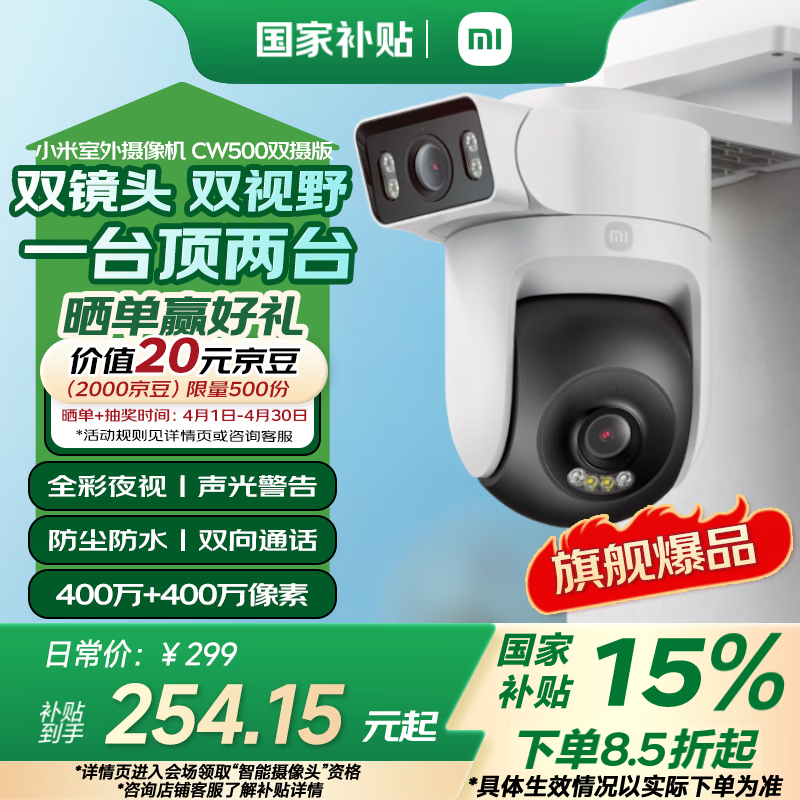 小米Xiaomi室外摄像机CW500双400万像素云台摄像头促销