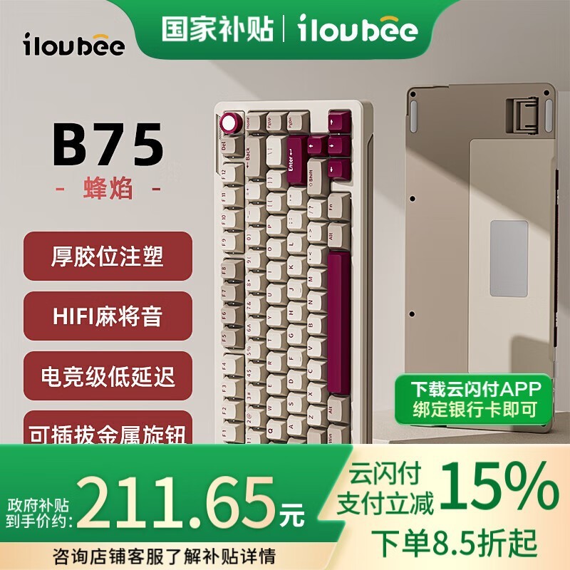 艾卢比B75机械键盘促销,原价249现229
