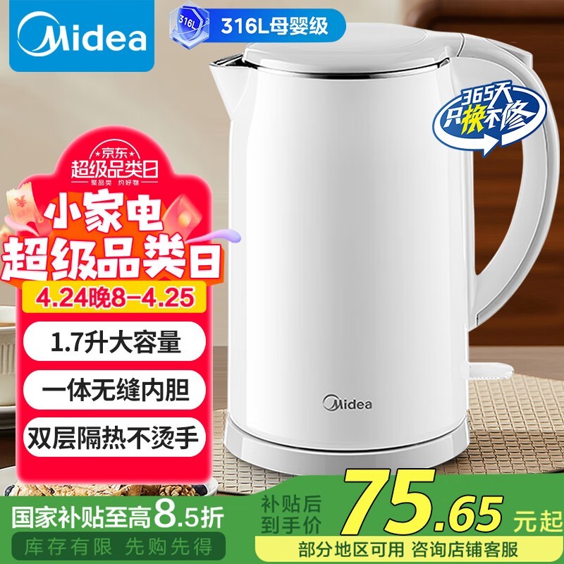 美的电水壶SH17M301PRO仅需63.36元可入手