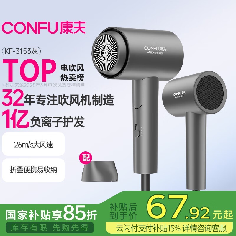 康夫小型便携折叠吹风筒KF-3153亿级负离子护发技术