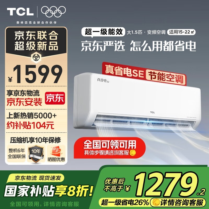 TCL真省电SE系列空调1匹新一级能效仅1173元