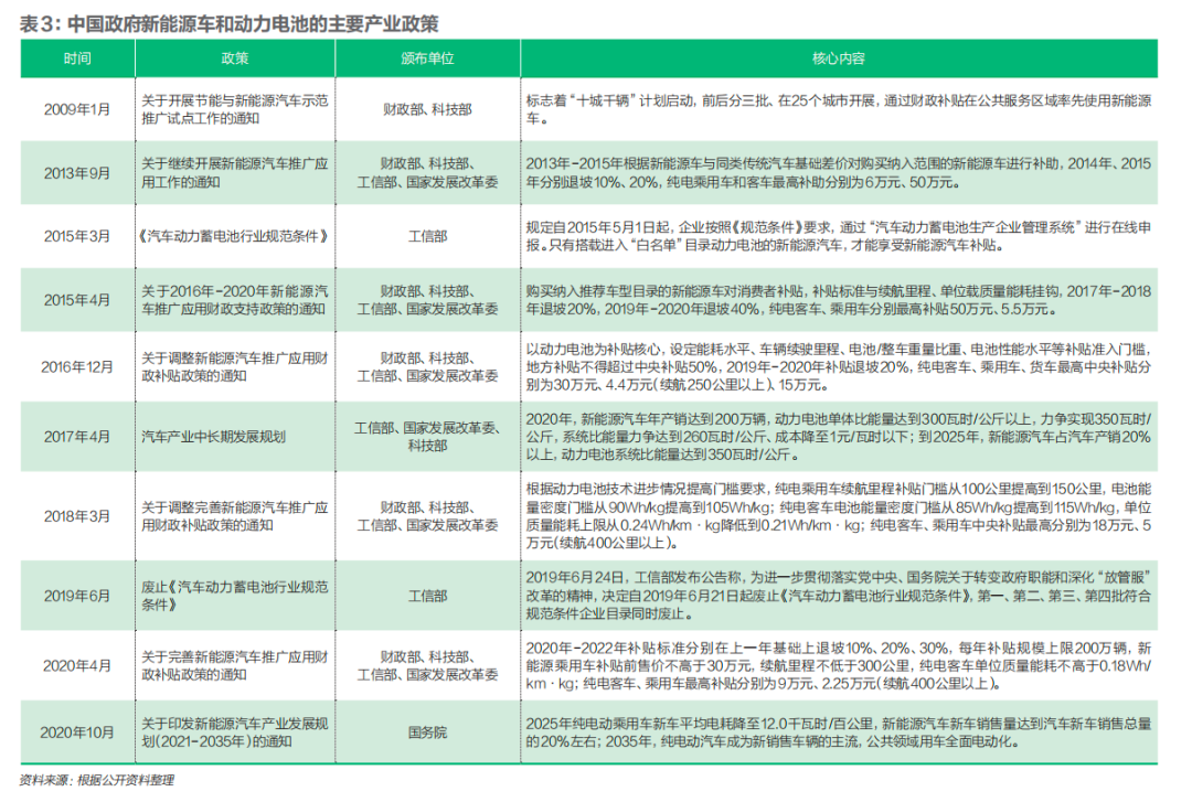 此后,中国政府调整补贴政策,陆续将续航里程、整车能耗水平、电池能量密度等纳入准入标准,提高补贴门槛,降低补贴额度,逐步限制地方补贴力度,并制定补贴退坡时间表。