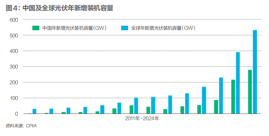 中国政府的政策支持则让光伏下游市场的增长引擎回到了国内,而技术自主创新,让产业链上游的技术和设备稳固掌握在了中国光伏企业手里。
