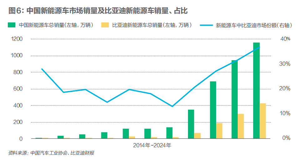 2003年,比亚迪收购秦川汽车进入汽车行业时,比亚迪董事长王传福约见了后来的比亚迪首席科学家廉玉波,向他描述了比亚迪汽车发展的三步走战略。王传福对廉玉波说,2025年比亚迪要成为全球最大的新能源车企。第一步燃油车为主,借着中国汽车市场快速发展的红利,以价格优势赢得入场券。第二步燃油车新能源车两条腿走路,用燃油车的收益支持新能源车的研发投入。第三步全面新能源化,依靠技术和规模两大优势形成核心竞争力。2005年9月,比亚迪首款车型F3上市,2007年销量突破10万辆。2009年,比亚迪销量近30万辆,成为当年中国汽车市场的轿车销量冠军,这是中国自主品牌首次获得轿车年度销冠,比亚迪的第一步如期完成。