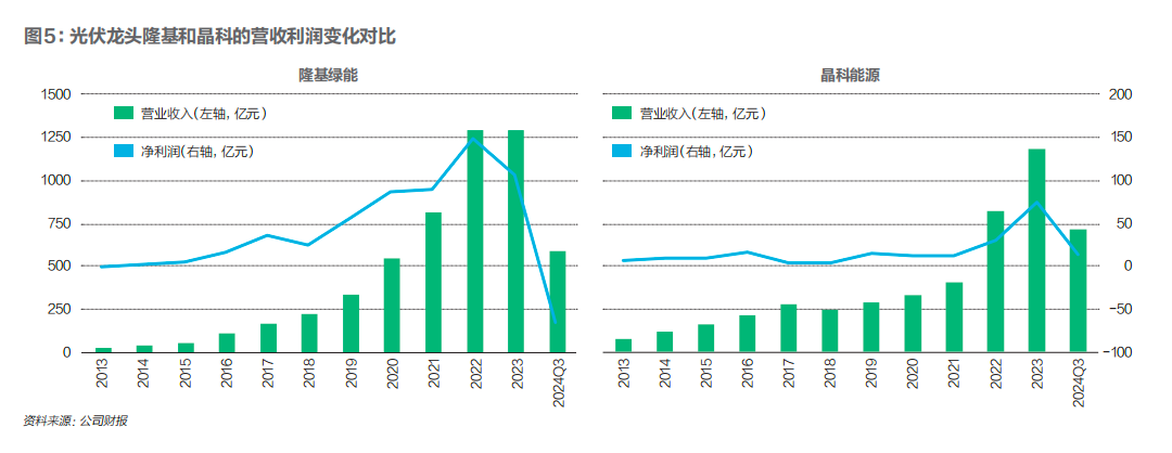 2023年下半年,光伏行业急转直下,组件价格从2元/瓦一路下跌,直至有企业报出0.5元/瓦的超低价。2023年营收前六的光伏龙头,2024年合计预亏超过300亿元,仅晶科能源实现微利。