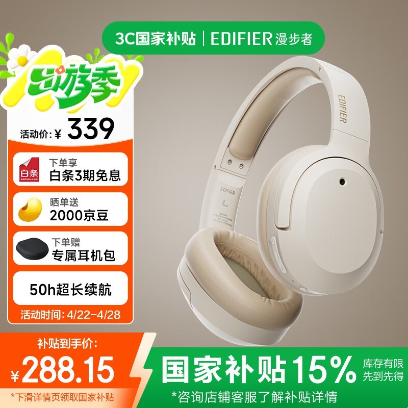 漫步者W820NB双金标版头戴蓝牙耳机云岩白款促销