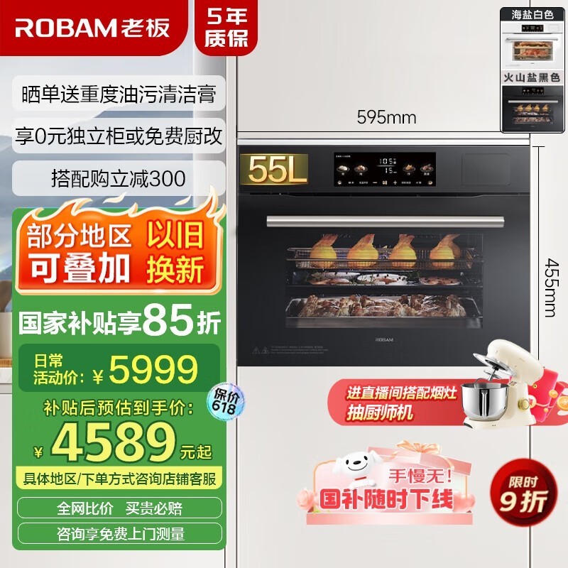 盐系G1火山盐黑色蒸烤箱一体机嵌入式55L京东特惠