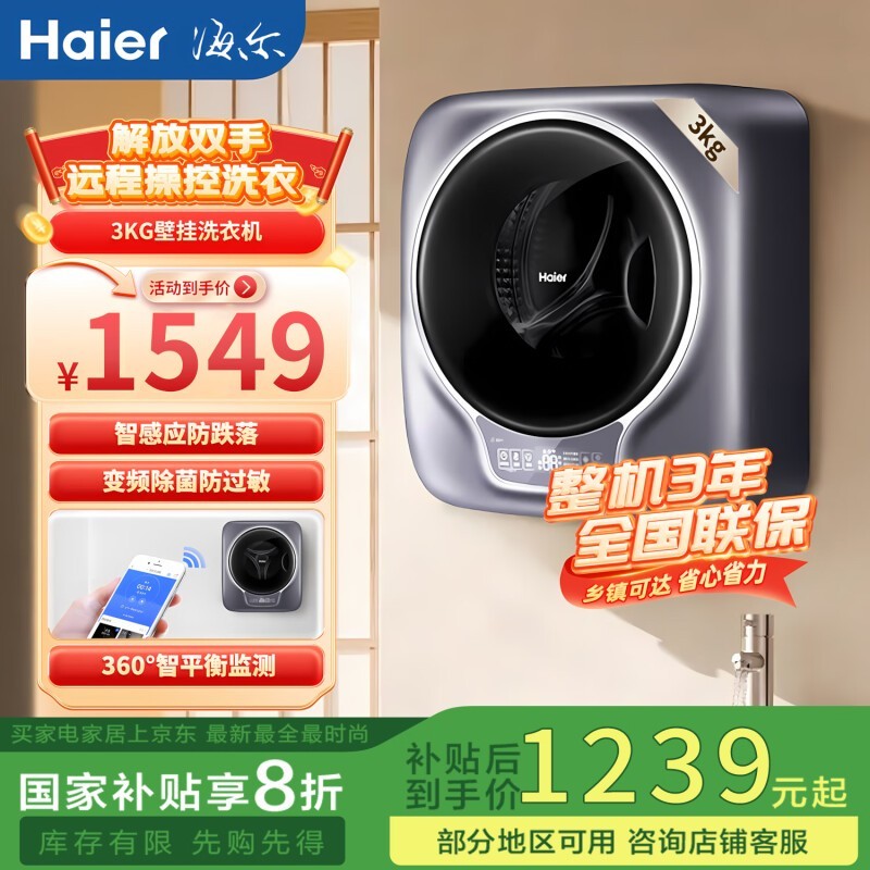 海尔3kg母婴洗衣机,京东到手价1529元